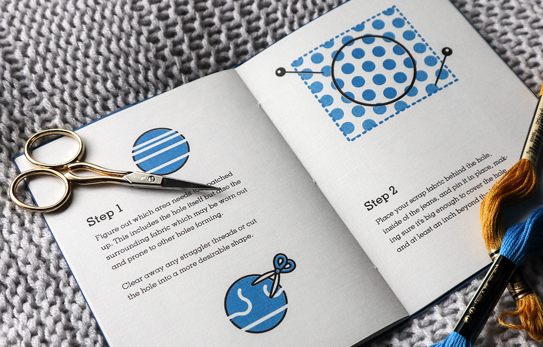 Re-Sew is a small-run publication that focuses on cloth mending and the importance of sustainability in regards to fashion. The goal of Re-Sew is to advocate for “old” items and diminish the idea of “disposable” clothing. Each booklet focuses on a common mending method.